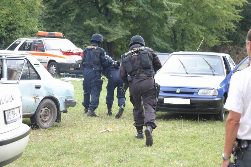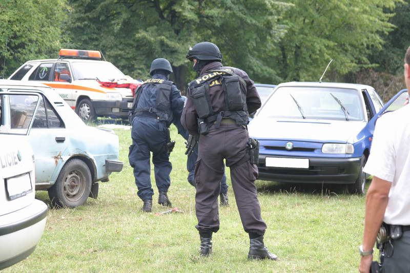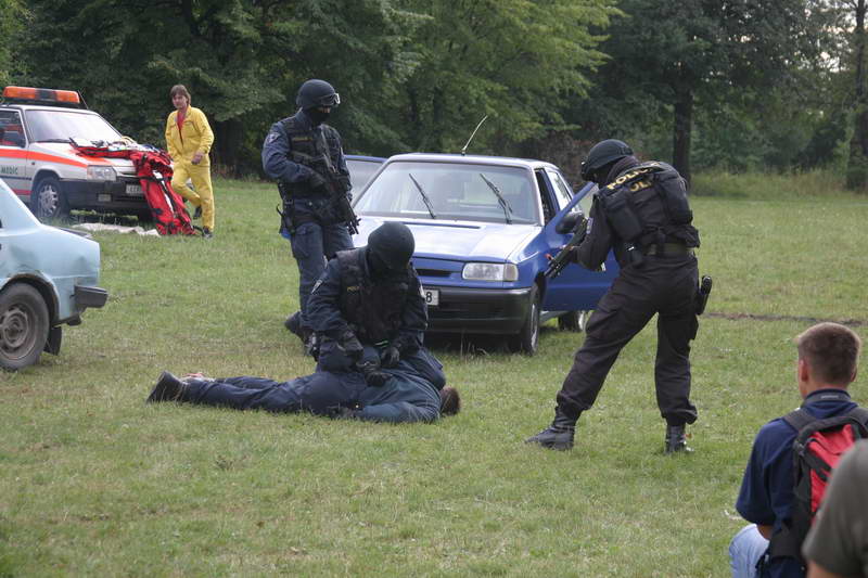 Akce zásahové jednotky zneškodnění nebezpečného pachatele jedoucího ve vozidle,dále byly k vidění zbraně, které "zásahovka" ve službě používá