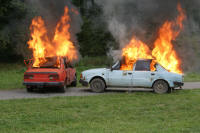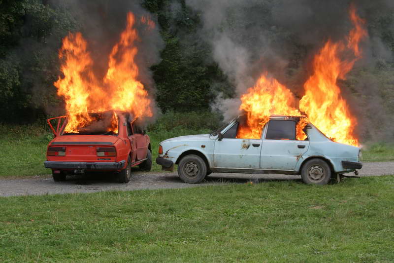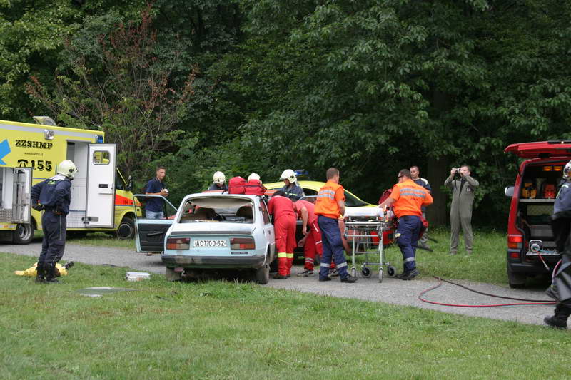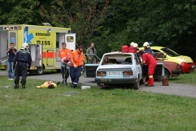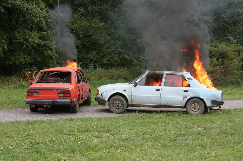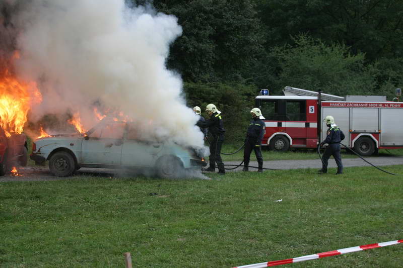 Vrcholem dne byla simulace dopravní nehody s následným vyproštěním osob a poskytnutí první pomoci. Po té následovalo zapálení obou vozidel a následně na to předvedli hasiči jejich uhašení, vše s odborným výkladem.